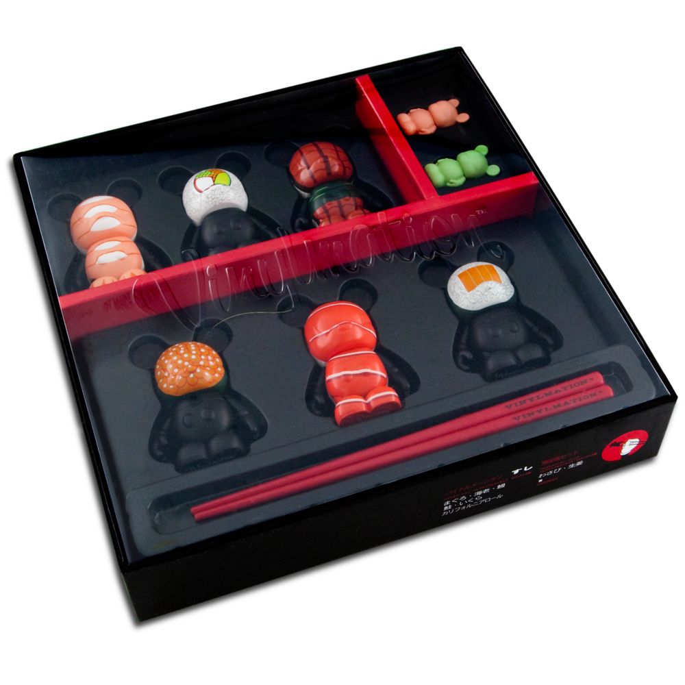 Set a place in your collection for this appetizing Vinylmation Sushi Set. Get 6 fishy 3'' pieces along with 2 Juniors and chopsticks. Disney artist Thomas Scott was on a roll with he came up with this fresh idea for a limited edition Disney Collectible.
